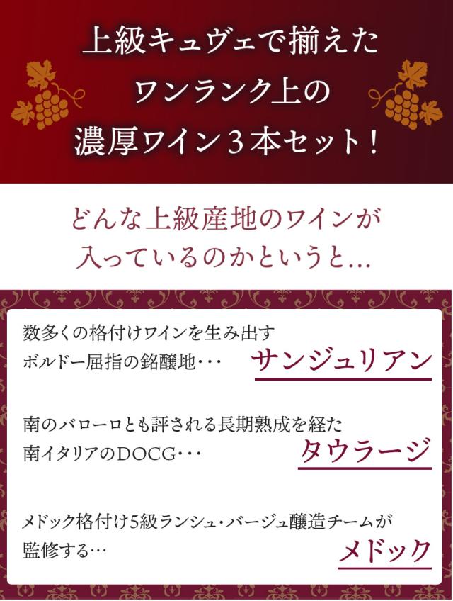【送料無料】ワインセット 第7弾 上級 フルボディ 濃厚 サンジュリアンタウラージ リュサック・サンテミリオン 赤ワイン 3本 上級濃厚フルボディ