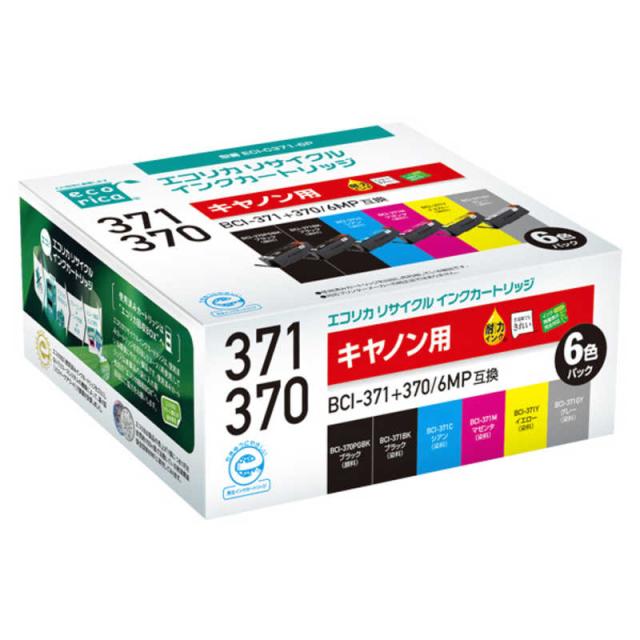 エコリカ 互換リサイクルインクカートリッジ [キヤノン BCI-371+370/6MP] 6色パック ECI-C371-6P