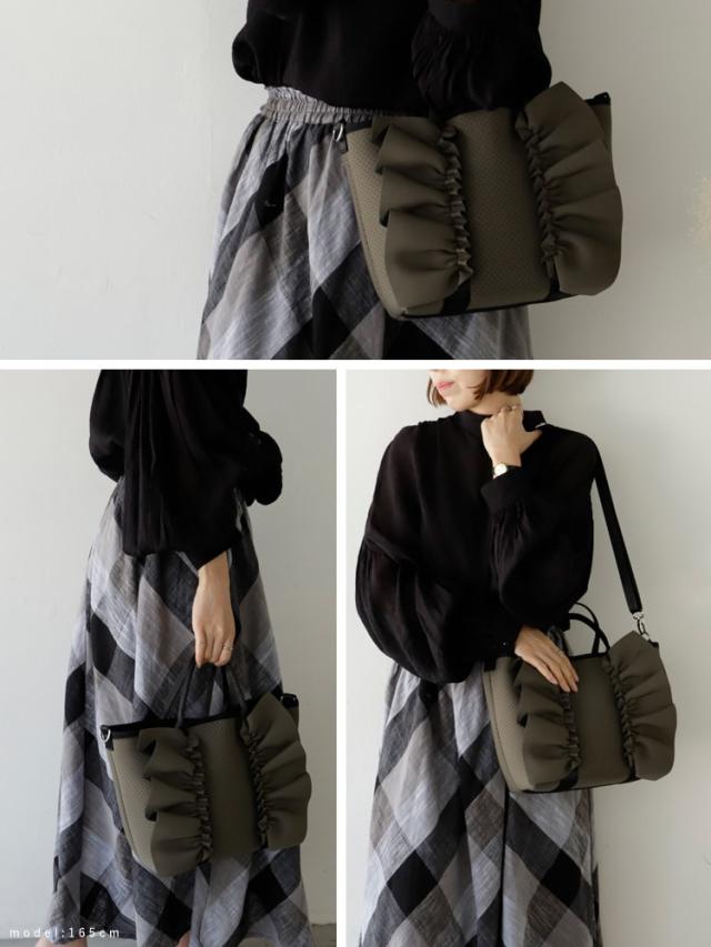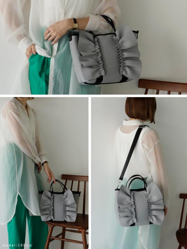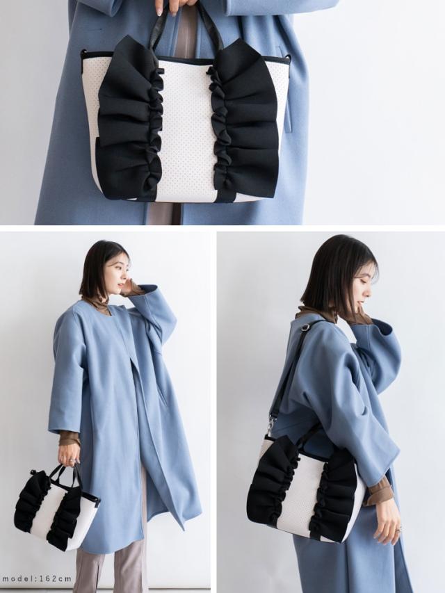 ヴィータフェリーチェ(VitaFelice)/ネオプレーン2wayフリルトートバッグ【aroco/アロコ】