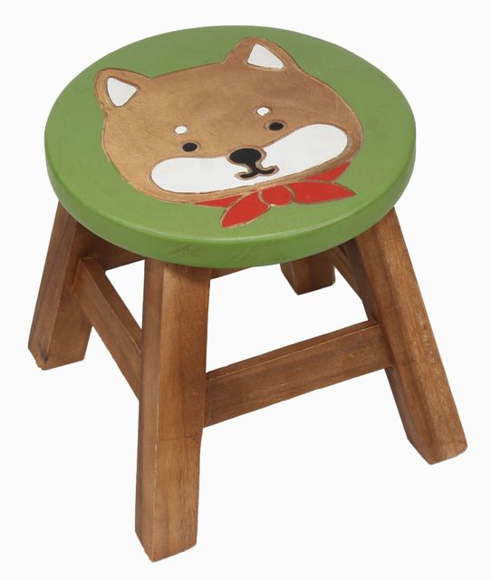 可愛い柴犬がお部屋のインテリアになる木製の小さな椅子です。