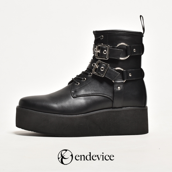 冬新作 新作 endevice 厚底リングブーツ ユニセックス ヒール 3E 相当 厚底ブーツ V系 新宿 モード インサイドジップ ブラック 靴 シューズ メンズ 紳士 レディース 女性 エンデヴァイス ブランド 送料無料