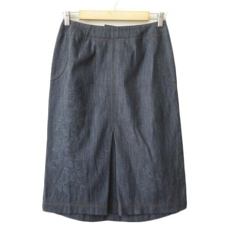 【中古】レリアン Leilian スカート タック 刺繍 花柄 シャンブレー デニム 9 青 ブルー レディース