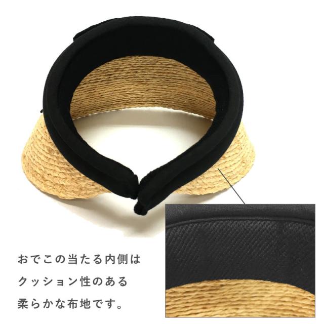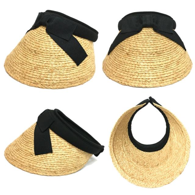 天然ラフィア(麦わら)素材のつば広サンバイザーです。