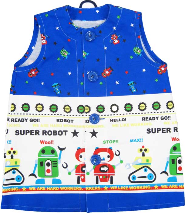 スモック 袖なし前開きスモック 【園児・幼児】(ブルースーパーロボット柄) 綿100% 入園 入学 幼稚園 保育園 小学校(詳細)