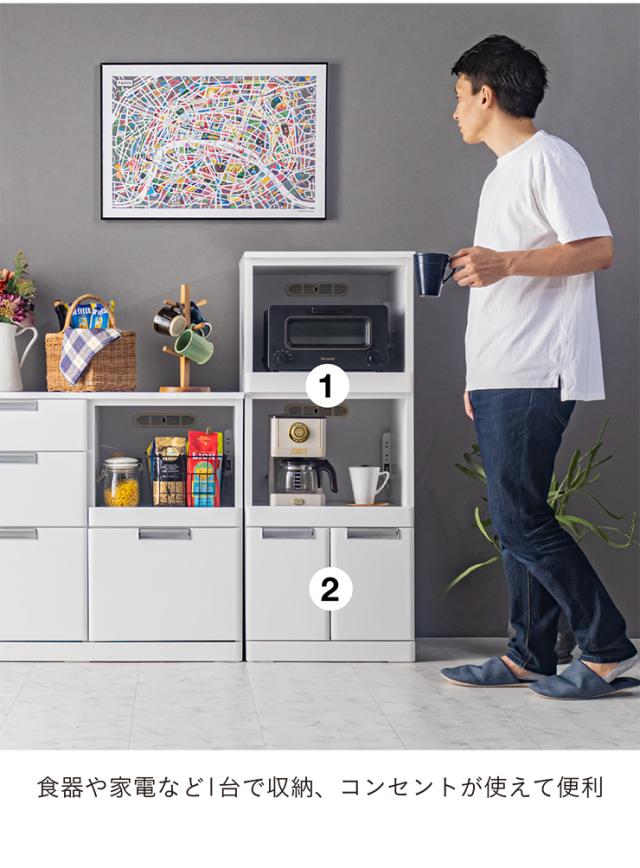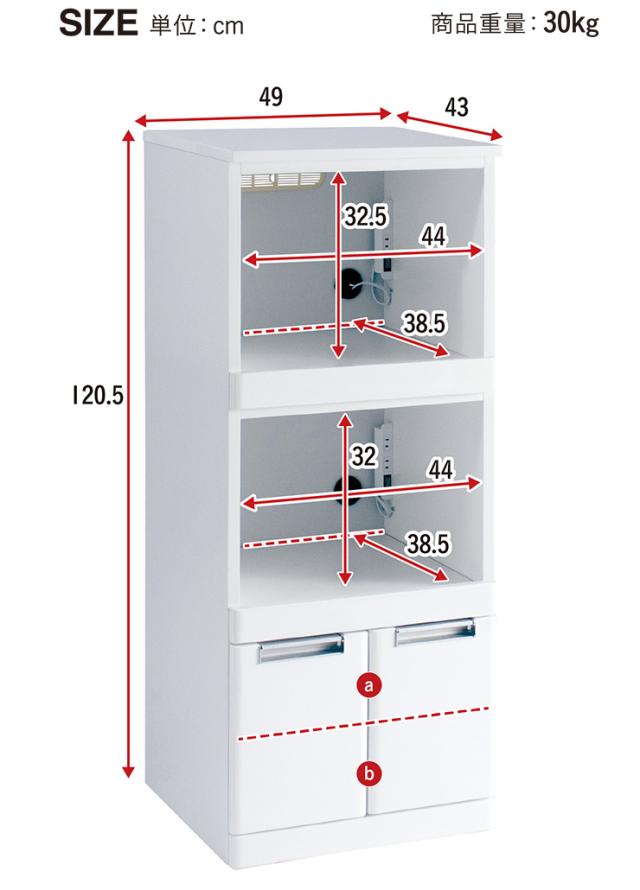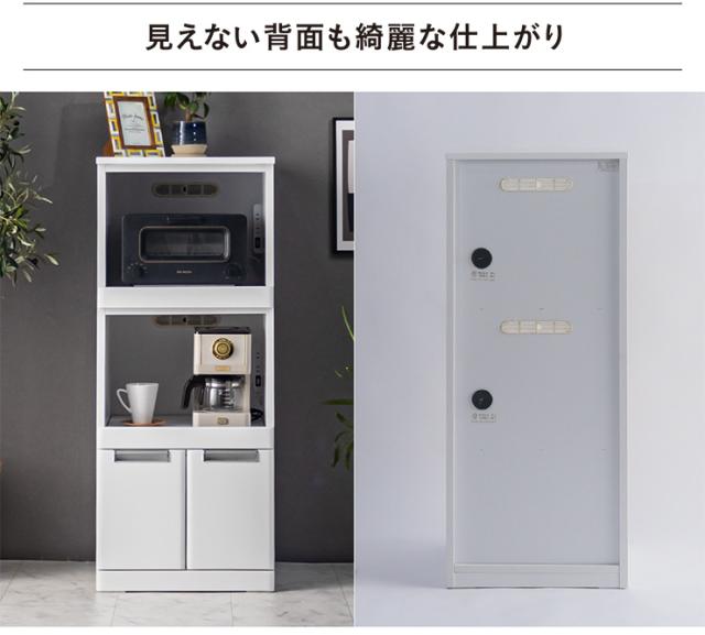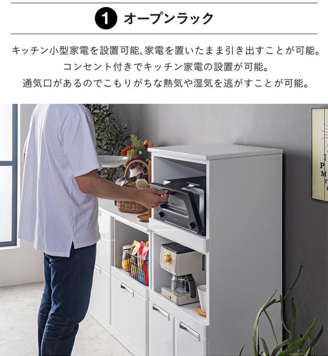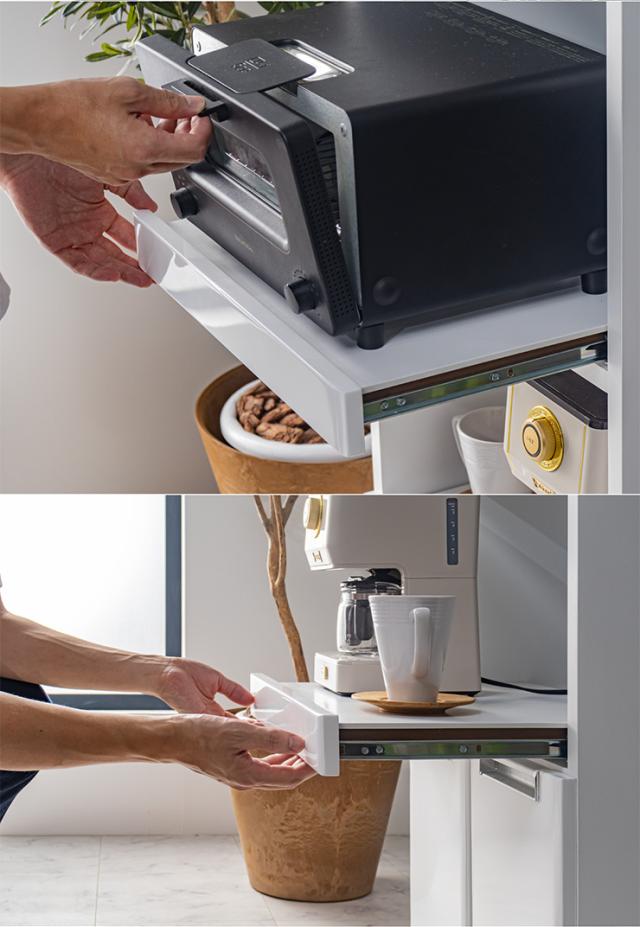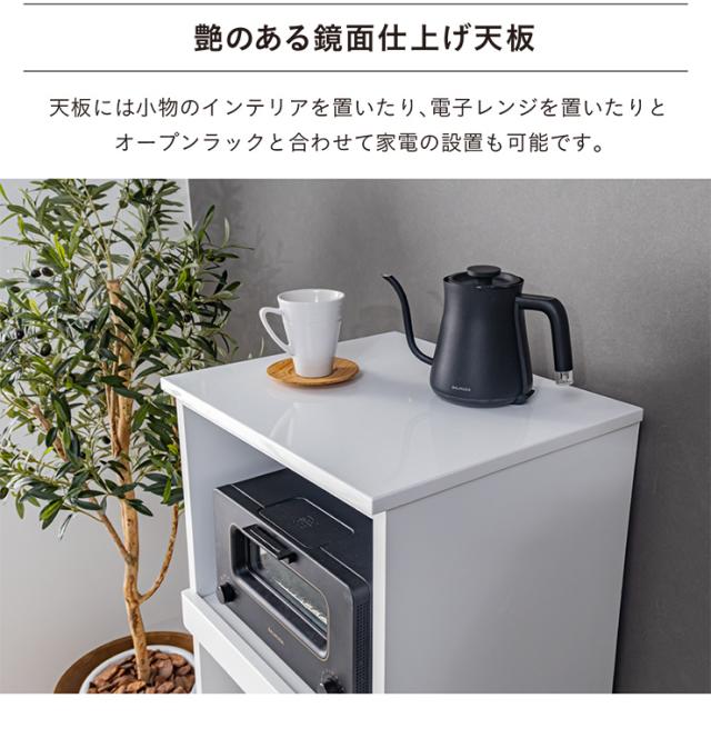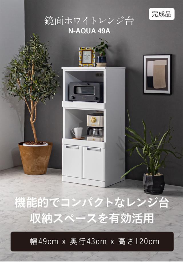 【完成品/コンセント付き】鏡面ホワイト レンジ台 幅49cm Nアクア Aタイプ レンジラック レンジ収納 レンジボード スライド式 50幅 幅50 食器棚 台所 キッチン ロータイプ コンパクト 棚 白 おしゃれ 木製