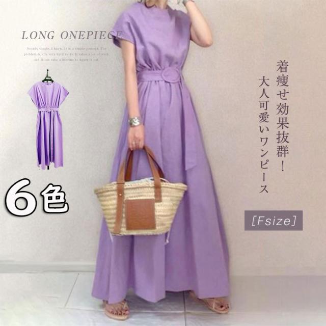 ワンピース レディース マキシワンピース 可愛い きれいめ 上品 ゆったり 半袖ワンピース ロングワンピース ブラック 黒 パープル フリーサイズ 30代40代50代