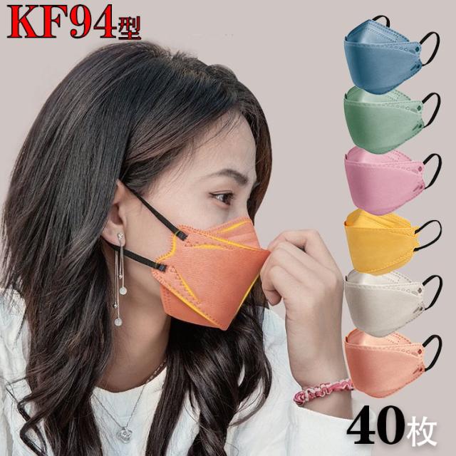 【枚数限定】【40枚セット】【クリアランスセール】送料無料 マスク 不織布 血色マスク カラー 立体マスク 3D 4層 不織布マスク 小顔 口紅がつきにくい 使い捨てマスク カラーマスク 大人 女性 男性 耳が痛くない 通気性 花粉 KF94マスク 夏用マスク