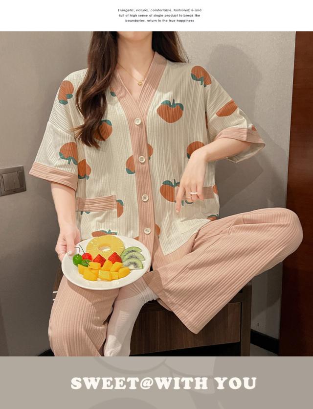 3点セット パジャマ 夏用 レディース ルームウェア 桃柄 部屋着 女性用 半袖上着 パンツ 短パン 長ズボン 着心地抜群 涼しい 爽やか レディースパジャマ かわいい 上下セット セットアップ おうち時間 寝間着 ギフト プレゼント 春 秋 ピンク dh008z7z7c9