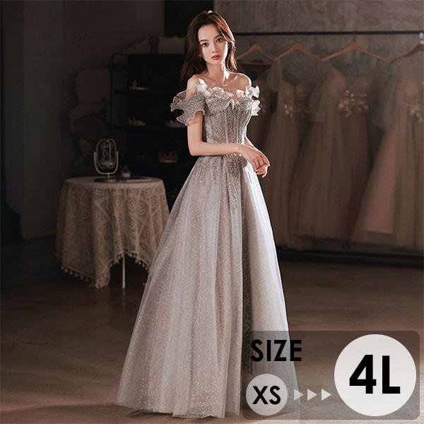 ロングドレス オフショルダー 演奏会 大人 ピアノ 発表会 ワンピース 袖付き キラキラ ドレス フリル 半袖 成人式 同窓会 演奏会ドレス Aライン 結婚式 ステージドレス パーティードレス ウエディング ハワイ 結婚式 リゾートワンピ グレー XS S M L 2L 3L 4L
