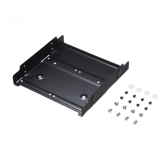 5インチベイに2.5インチSSD/HDDを二台、または3.5インチHDDを一台取り付けできる変換マウンタです。一体型マウンタのため、複数部品を組み合わせる製品に比べて簡単にしっかりと固定できます。ベイ固定用のネジ位置は5インチデバイスと同じ穴間隔のため高い互換性を持っています。<ご注意>※1997年頃まで使用されていた旧ネジ位置の2.5インチ機器には対応しません。※本製品にはSSDやHDDは付属していません。※本製品に取り付けたSSDやHDDについて、サンワサプライは、いかなる原因においても、内部データおよびSSDやHDDの保証はいたしません。※ケースの仕様によってはお取り付けできない可能性があります。ネジ固定が可能なケースかどうか、お確かめください。
