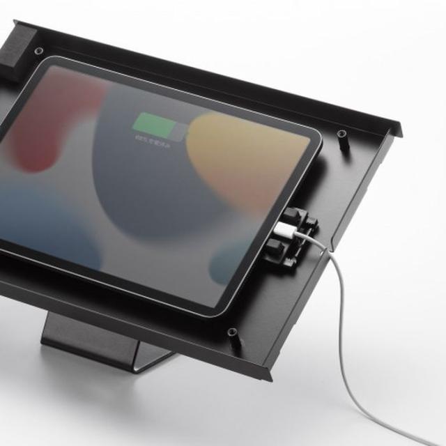 iPadに対応したスタンド付きスチール製のケースです。※12.9インチiPad以外の全ての機種に対応しています。カラーバリエーションは、ブラック(JAN:4969887195345/品番:CR-LASTIP34BK)、ホワイト(JAN:4969887195352/品番:CR-LASTIP34W)です。スタンドを壁面に取り付けることができます。スタンドに着けたままの状態で90°回転し、縦横どちらでも使用ですることができます。収納したままで、充電ケーブルを挿すことができます。※取り外し防止、盗難防止の機能はありません。セキュリティワイヤーの取付ができるセキュリティホールがあります。鍵付きです。