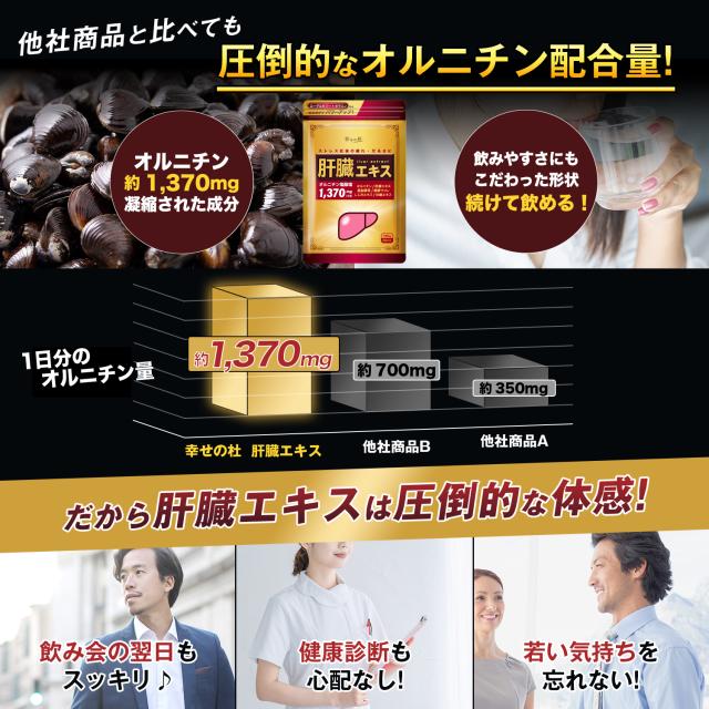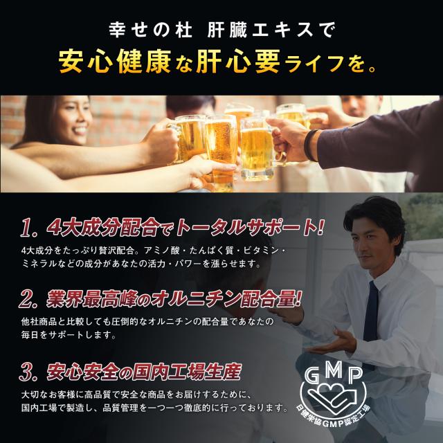 幸せの杜 肝臓エキス+オルニチン サプリメント 健康食品 亜鉛 サプリ しじみ ウコン 肝臓 男性 女性 180粒 約30日分