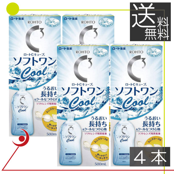 ロート Cキューブソフトワンクール(500ml) ×4本 ソフトコンタクト用洗浄液 送料無料