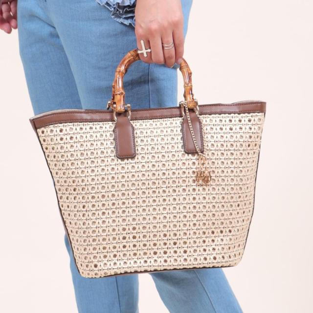 ベース/バンブーハンドルメッシュトートバッグ