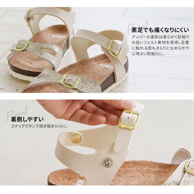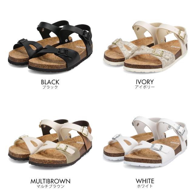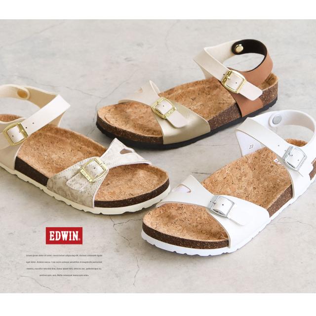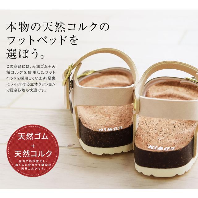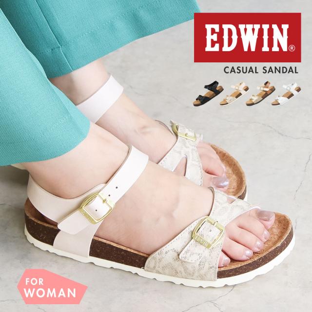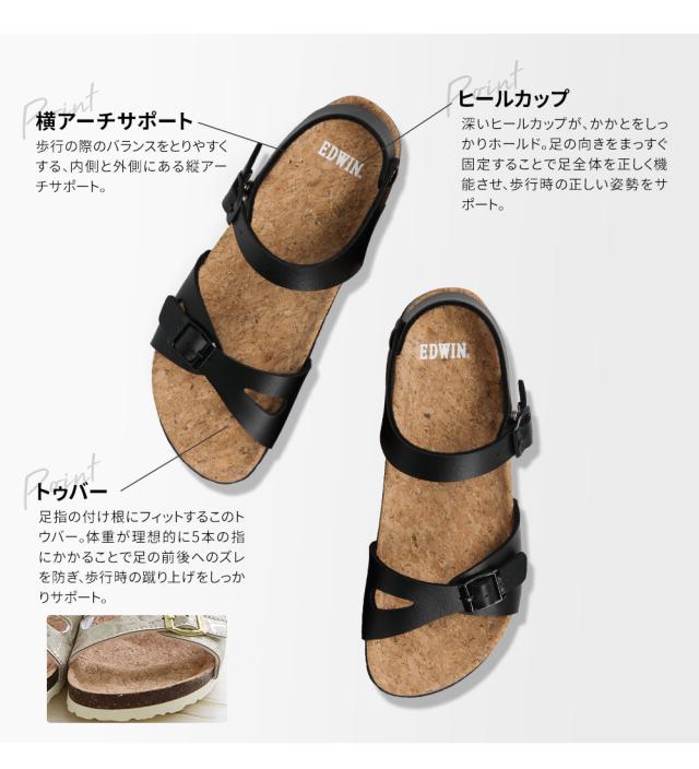 エドウィン コンフォートサンダル レディース アンクルストラップ バックストラップ おしゃれ 脱げにくい フットベッド アーチサポート 痛くない カジュアル 疲れにくい レジャー アウトドア 天然コルク 黒 白 ブラック アイボリー マルチブラウン ホワイト 9464 送料無料