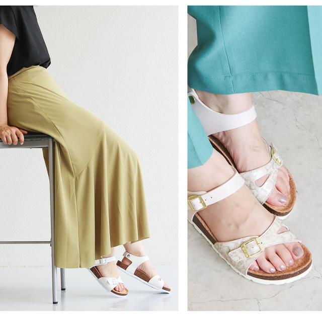 ラクな履き心地のコンフォートサンダル+アンクルストラップでフィット感抜群!