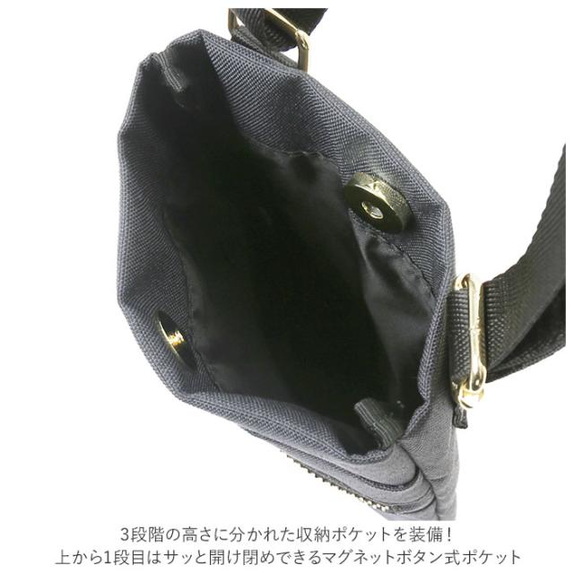 | 商品説明 | ・anelloGRANDE(アネログランデ)のグリッターシリーズから、ちょっとそこまでのお出かけにぴったりな、ミニショルダーが登場。 ・お出かけに必要な最小限の小物を収納できる、ミニマルなサイズ感。スマホの出し入れもラクラク。 ・表生地にはサラリとした手触りが心地よく、軽量な杢調ポリエステル生地を使用。水滴や汚れをサッと弾くはっ水加工が施されているから、急な雨でも安心。(※完全防水仕様ではありません。) 3段階の高さに分かれた収納ポケットを装備! ・上から1段目はサッと開け閉めできるマグネットボタン式ポケット。2段目はオープンポケット、3段目はファスナーポケット。 ・物や場面に合わせて使い分けできるのが嬉しい。 ・長さ調整可能なショルダーベルトを使って、首から掛けたり斜め掛けもOK。 ・コーデのポイントになるカラーをラインナップ。シンプルなデザインだからユニセックスで使えるのも嬉しい。 |
