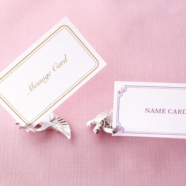 竹中銅器の「錫箸置き 長寿鶴亀」です。日本の伝統的な文様で、縁起の良い鶴亀をモチーフにした箸置きです。「鶴は千年、亀は万年」とも言われるとおり、長寿や吉祥の象徴として慶事の会席をはじめ、ご家庭でのお祝いの食卓を演出します。素材の錫は柔らかい金属なので、手で曲げて形を変えることができます。鶴の翼や首を軽く上向きに曲げていただくと、形が華やかになり、お箸も転がりにくくなります。錫は酸化しにくく、水の中に浸すと錫イオンによって水が腐りにくくなりますので、箸置き以外の使い方として、水盤や透明な花器の中に飾れば、活けたお花を長持ちさせることができます。また、首と翼との隙間を利用し、メッセージカードや席札を立てることができます。大切な方とのコミュニケーションや、お祝いの席の演出にご活用いただけます。