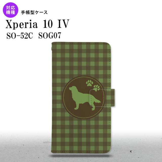 SO-52C SOG07 Xperia 10IV 手帳型スマホケース カバー 犬 ゴールデン レトリバー 緑