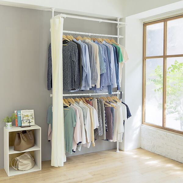 | ドリームウェア 突っ張り ハンガーラック カーテン付き クローゼット WJ-350WHCA |