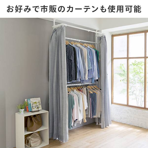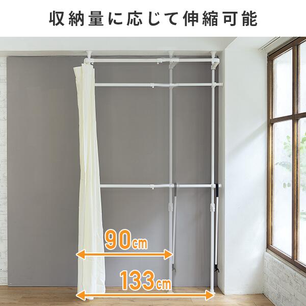 カーテン付き 突っ張り ハンガーラック 幅90-133 奥行36 高さ190-260cm WJ-350WHCA 2段掛け つっぱり棒 突っ張りハンガーラック クローゼットハンガーラック カーテン 幅伸縮 洋服収納 ワンタッチ式 おしゃれ ドリームウェア 【送料無料】