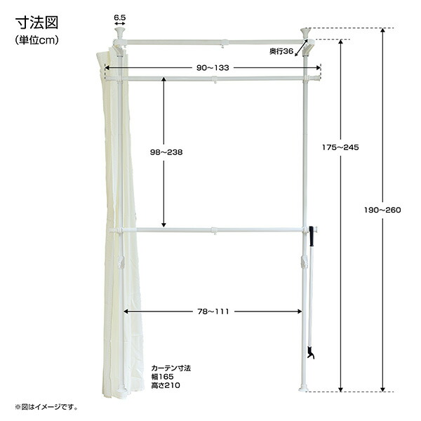 | 本体サイズ | 幅90-133×奥行36×高さ190-260cm 重量3.5kg |