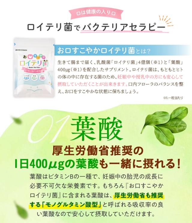 ロイテリ菌 お口すこやかロイテリ菌 30粒 (メール便送料無料) 葉酸 乳酸菌フローラ エチケット サプリメント タブレット 妊婦 赤ちゃん 子供