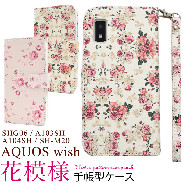 スマホケース AQUOS wish SHG06 A104SH SH-M20 wish2 SH-51C 手帳型 花模様 スマホカバー 花柄 お花 おしゃれ 可愛い 携帯ケース 上品 装着簡単 携帯カバー フェミニン かわいい 小花 エレガント フラワー 携帯カバー スマートフォンケース auスマホ au携帯カバー