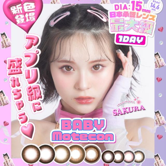 カラコン ベイビーモテコン ワンデー UV 着色直径 14.6mm BABY MOTECON かわいい 大きめ 1日使い捨て 度あり 度なし ベイビー ワンデー カラーコンタクト DIA 15.0 15mm 15ミリ big_bc