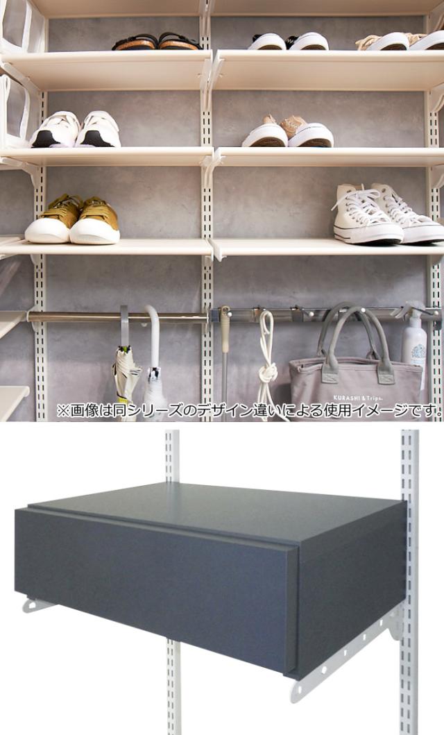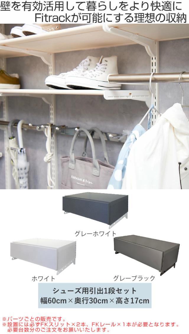 壁面収納 フィットラック 引き出し1段 シューズ用 幅60cm ( パーツ オプション 部品 DIY 収納 小物収納 小物入れ シューズ用引き出し 壁掛け 浮かせる収納 可動棚 オープンラック 収納ラック 有効活用 グレー ホワイト 玄関収納 )