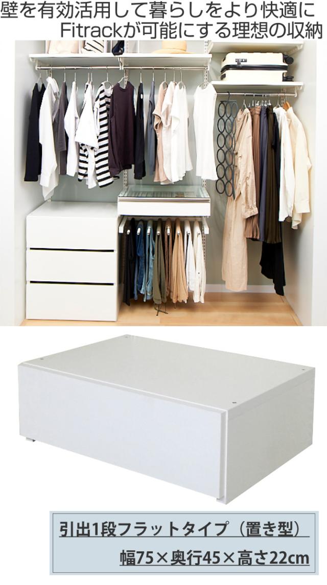 壁面収納 フィットラック 引き出し1段 幅75cm ( パーツ オプション 部品 DIY 収納 小物収納 小物入れ 引き出し 積み重ね チェスト クローゼット 有効活用 一段 ワイド 引出し 衣類収納 洋服 置き型 ホワイト 白 )