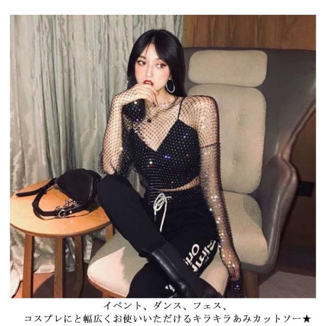 | イベント、ダンス、フェス、コスプレにと幅広くお使いいただけるキラキラあみカットソー★ よく伸びて体にフィットするので重ね着がしやすく動きやすい。 ボディラインが綺麗に出て、本当〜〜にスタイル良く見せてくれます! ※インナーのキャミソールは別売りです。 | |