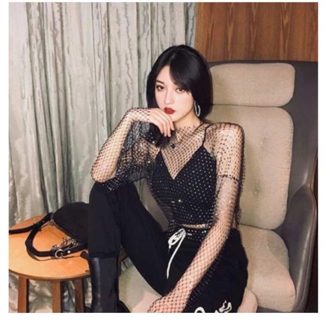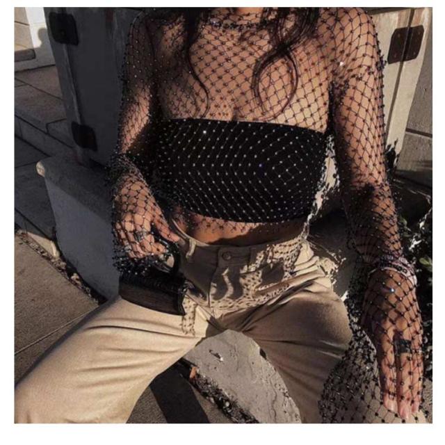 レース ダンス 衣装 メッシュ トップス ショート丈 トップス シースルー カットソー 長袖 キラキラ へそ出し トップス 透け 感 レディース おしゃれ かっこいい セクシー 黒