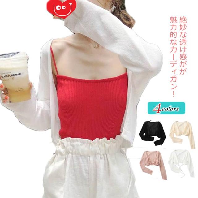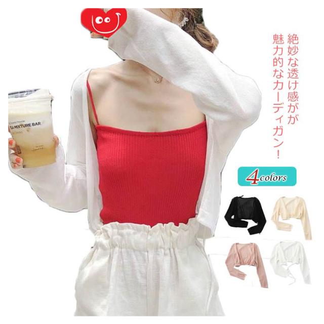 カーディガン レディース 透け感 シアーカーディガン 長袖 薄手 涼しい ショート丈 トップス 羽織り 紫外線対策 冷房対策 体型カバー 裾ゴム 快適 無地 カジュアル おしゃれ かわいい シンプル ゆったり 春夏 夏服 送料無料