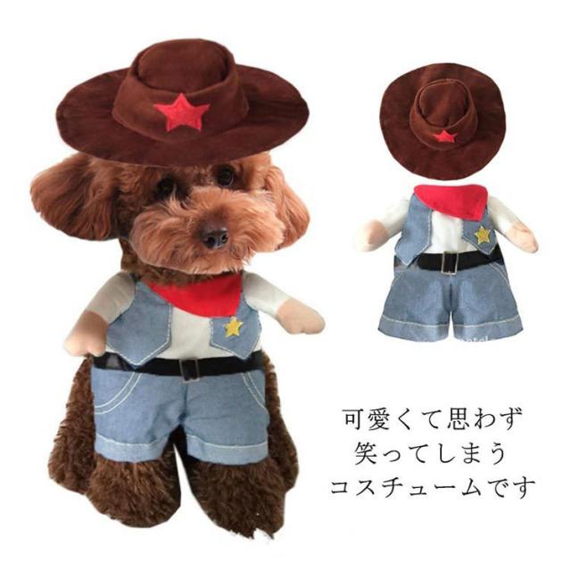 コスチューム 犬服 コスプレ 犬 ウエスタン 2点セット ハット付き カウボーイ 犬服 2足歩行 ペット 変身 小型犬 グッズ 衣装 仮装 バラエティー ペット 洋服 おしゃれ