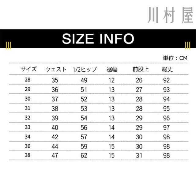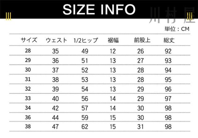 | サイズ | 28 29 30 31 32 33 34 36 38 |