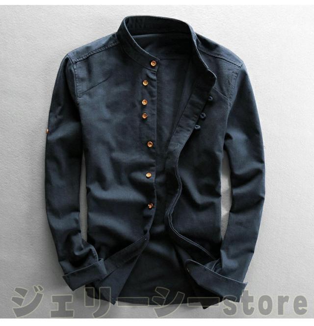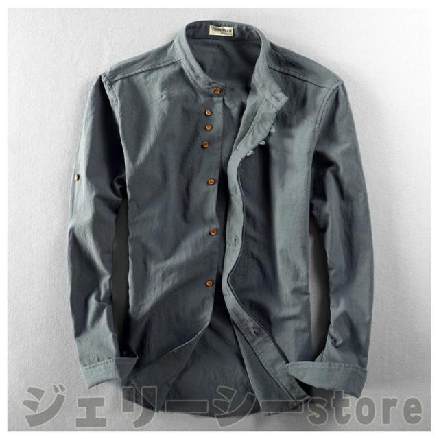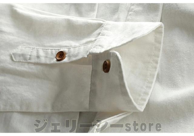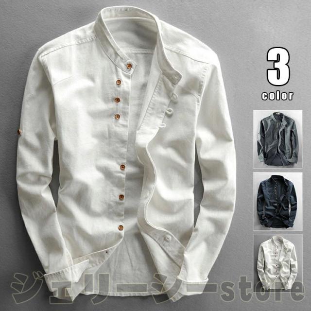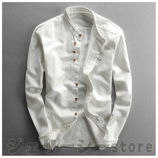 リネンシャツ メンズ シャツ 長袖シャツ スリムシャツ カジュアルシャツ 白シャツ トップス 綿麻シャツ 夏 サマー