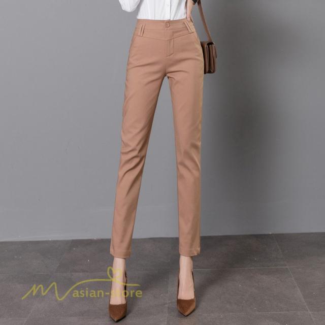 テーパードパンツ チノパンツ ロングパンツ 9分丈パンツ ビジネスカジュアルパンツ ハイウエスト ロングパンツ レディースパンツ ポケット 体型カバー