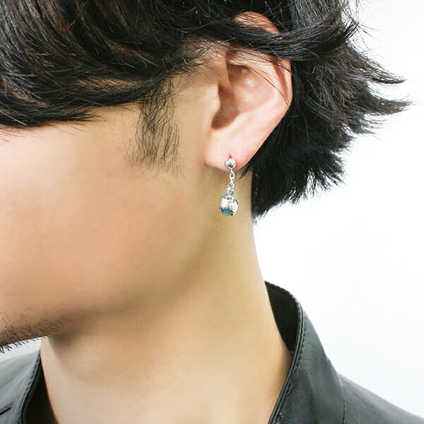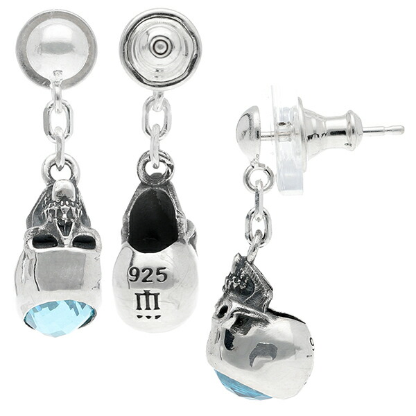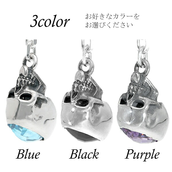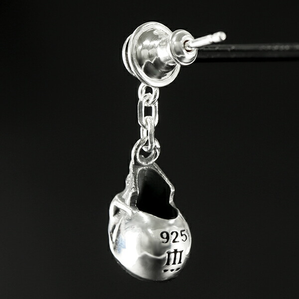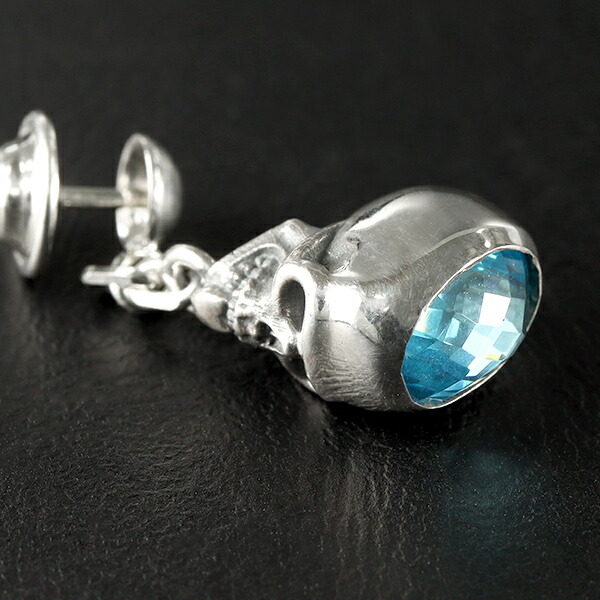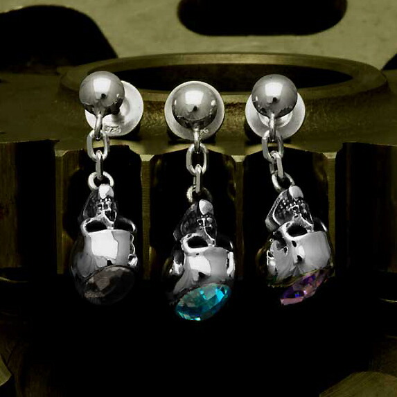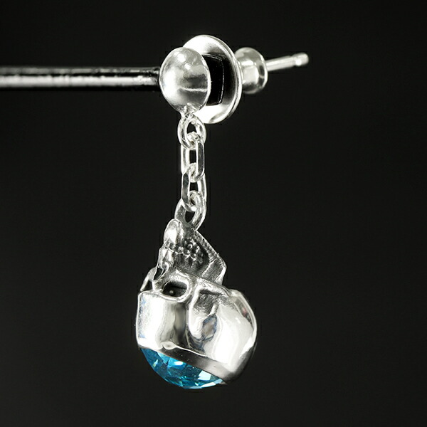 シルバーアクセサリー メンズアクセ メンズピアス スタッドピアス スタッズピアス シルバーピアス スターリングシルバー ブランドピアス スカル ドクロ 髑髏 骸骨 揺れる チェーン ストーン 石 色石 黒 青 紫 ブラック ブルー パープル