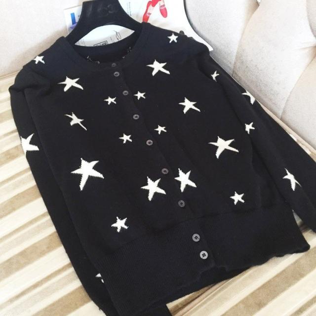 上品ニットカーディガンレディース40代秋冬 ニットカーディガン 星柄ショート丈 韓国風アウターニットカーディガン通勤着痩せオシャレ