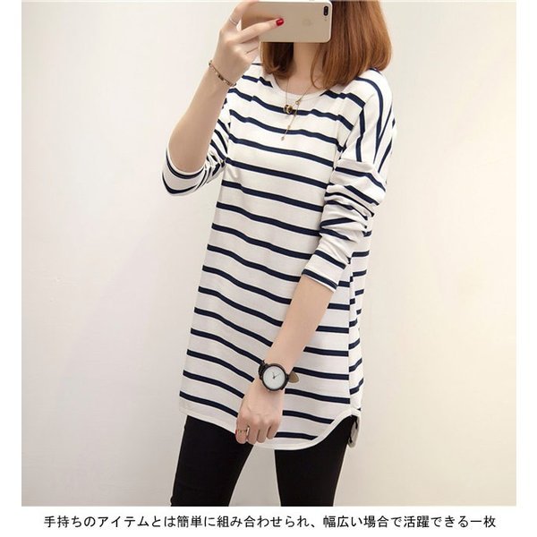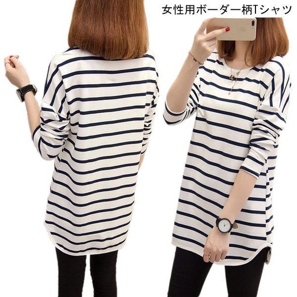 Tシャツ 長袖 女性用 ボーダー柄 長袖Tシャツ ゆったり マリンセーラー カットソー レディース トップス 春 夏 秋 シンプ
