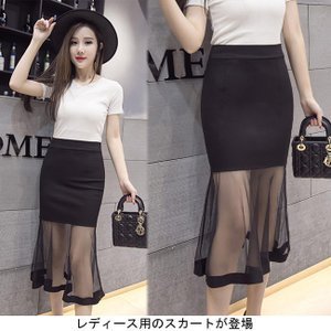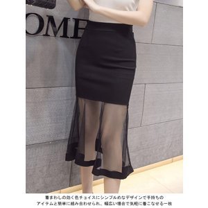 ロングスカート チュール裾 レディース ロング丈 チュールスカート フレア裾 女性用 タイトスカート 女性用 スカート 春夏秋