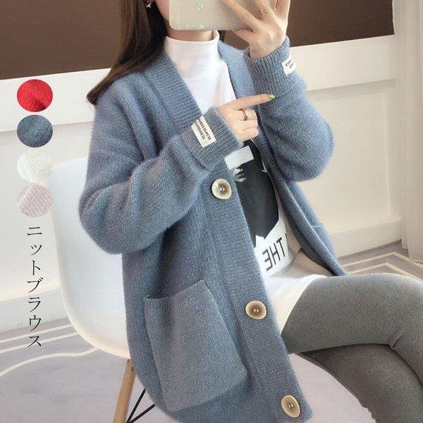ニット レディース セーター ブラウス トップス 秋 冬 カーディガン 無地 長袖 体型カバー ゆったり 大きいサイズ 30代 40代 通勤 通学 秋冬