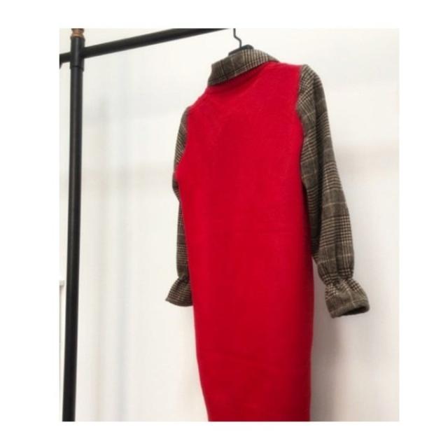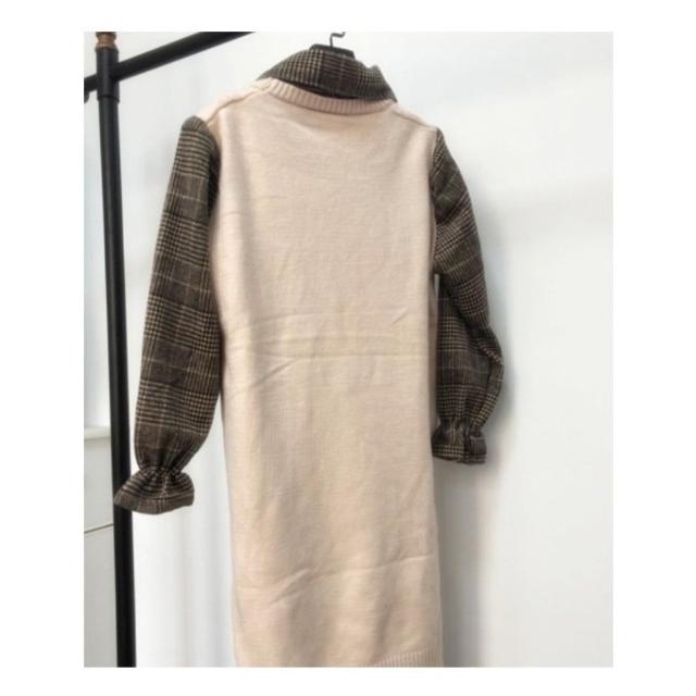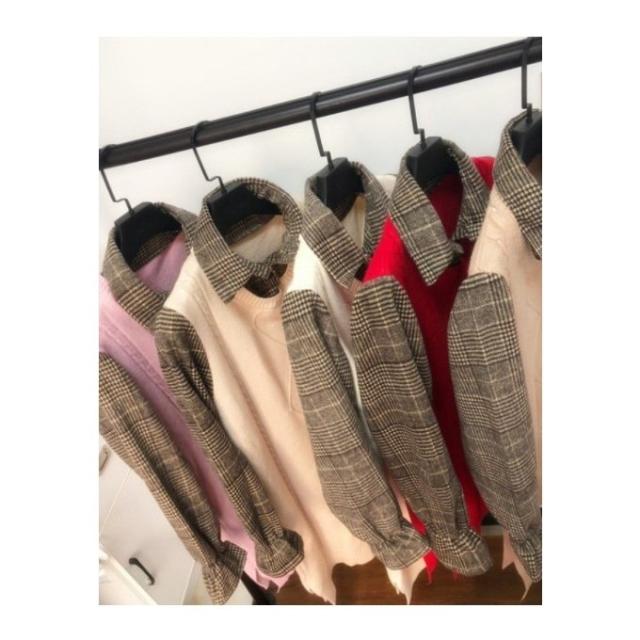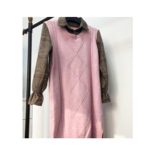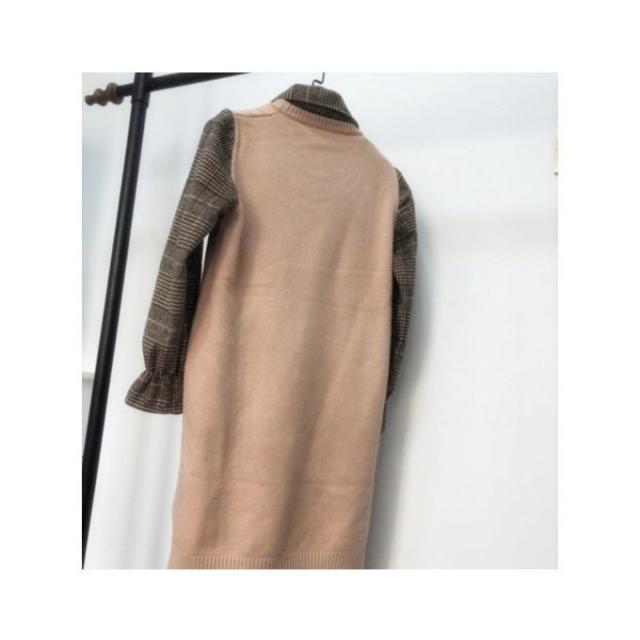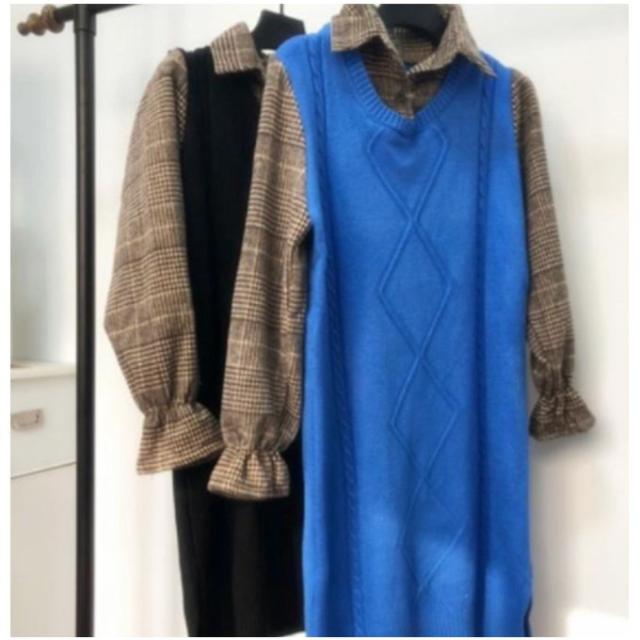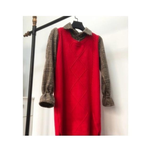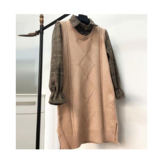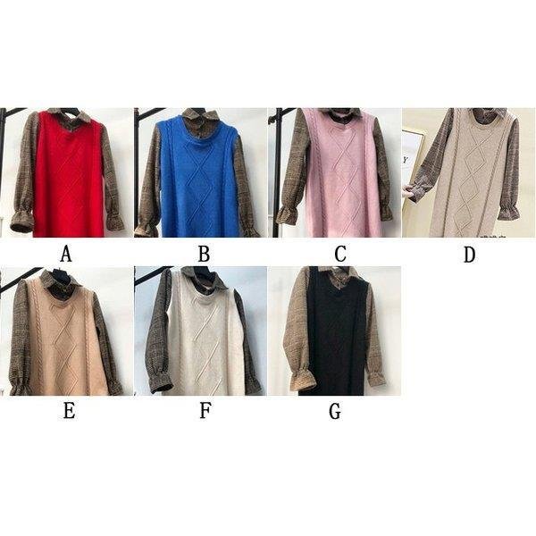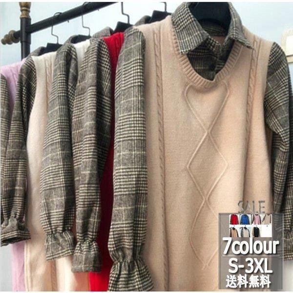 ロングニットベスト 長袖シャツ レディース vネック マキシワンピース 体型カバー キャミ 重ね着 フェイクアンサンブルシャツ 秋服 2020年秋冬