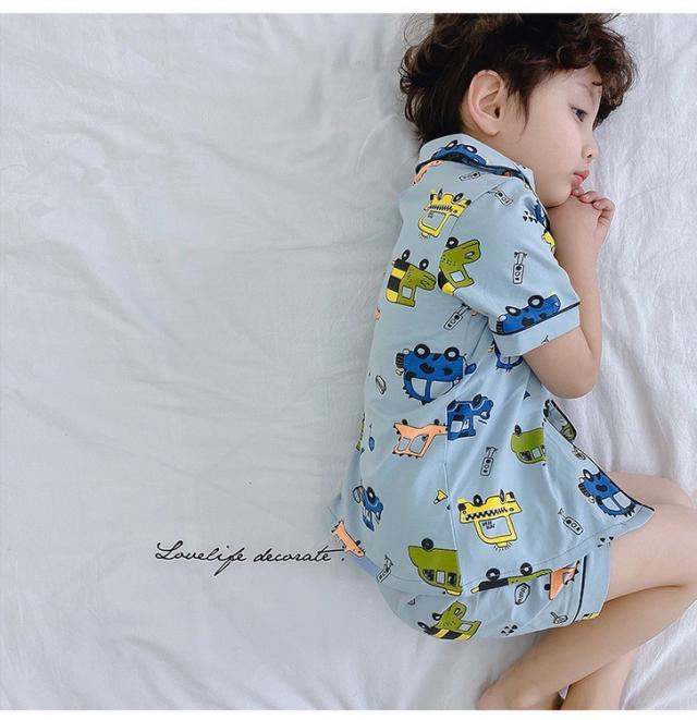 子供パジャマ 半袖 キッズパジャマ 男女兼用 前開き ルームウェア 前ボタンこどもパジャマ 綿パジャマ 6色 夏用 部屋着 寝巻き 90/100/110/120/130/140/150cm