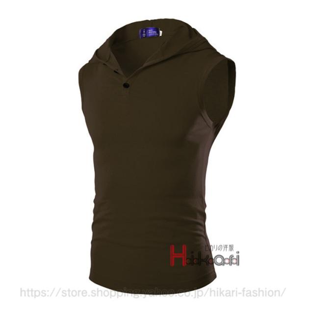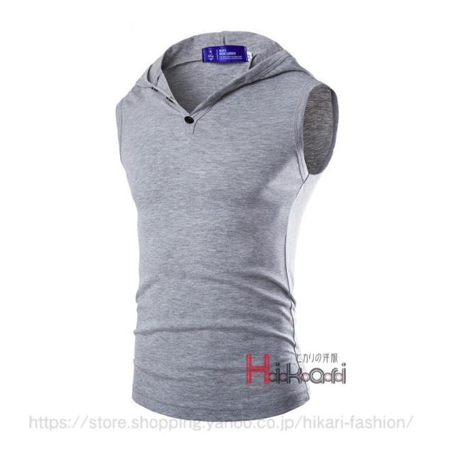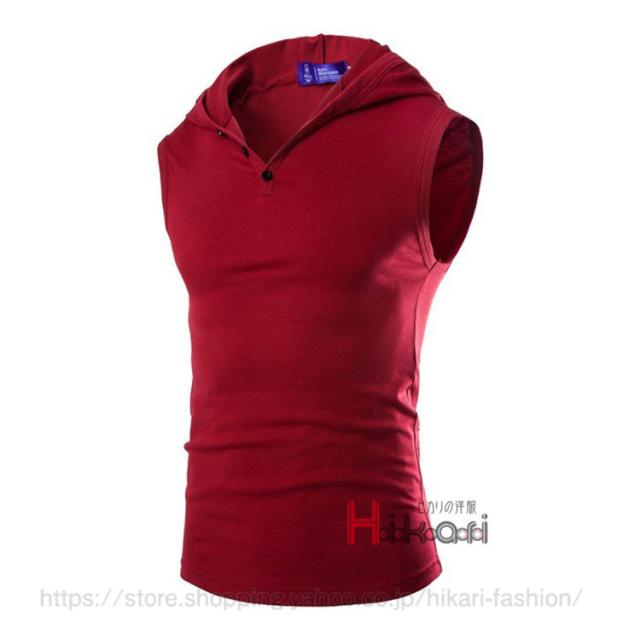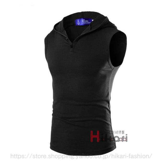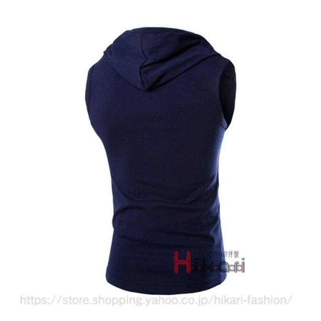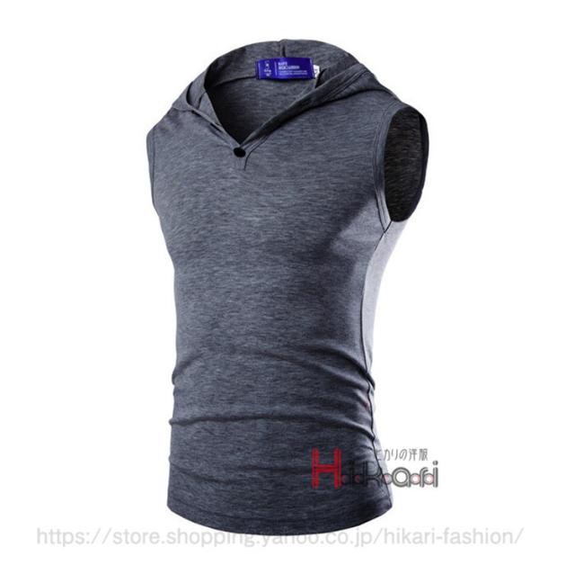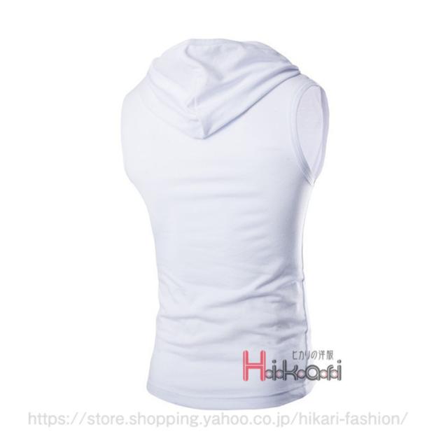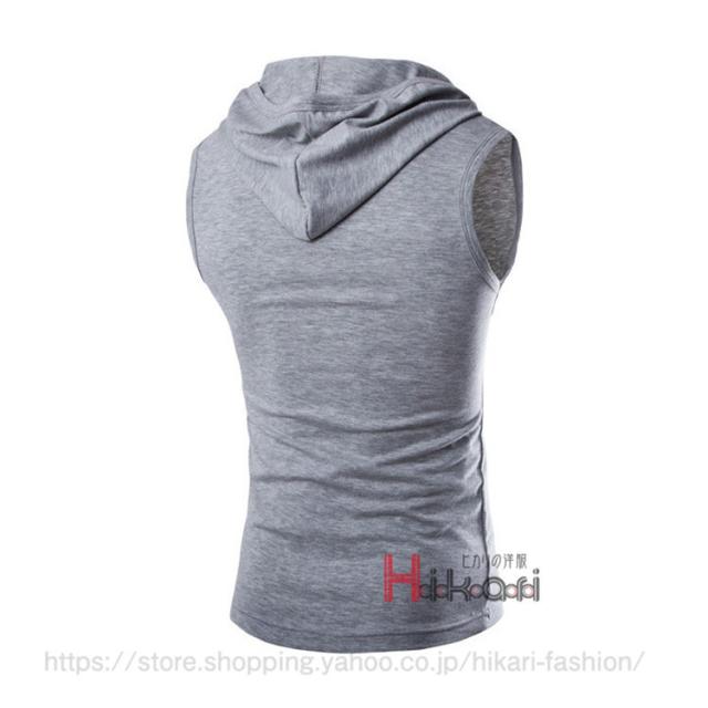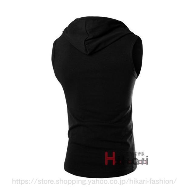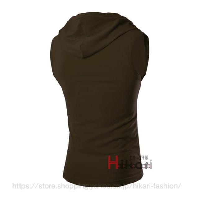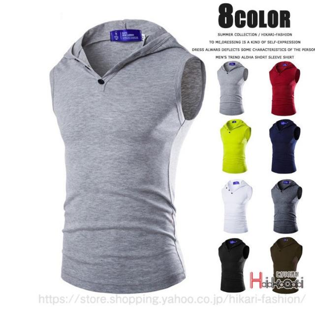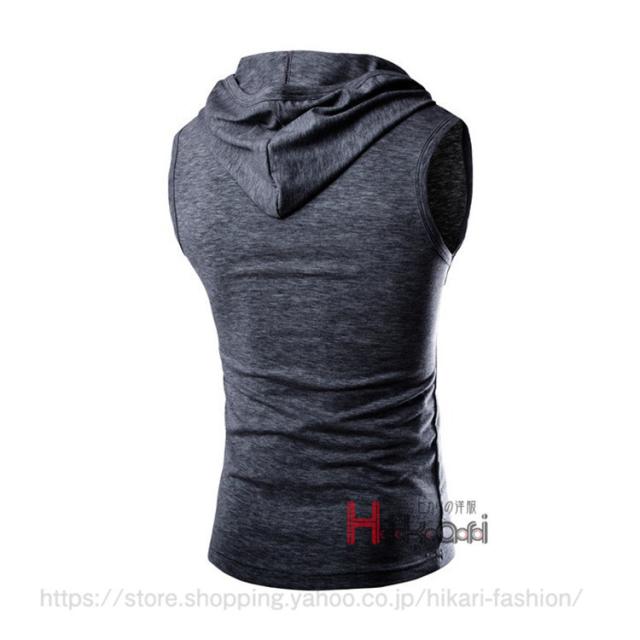 夏パーカー ノースリーブ パーカー メンズ タンクトップ スポーツ 部屋着 無地 インナー トップス 細身 プルオーバー