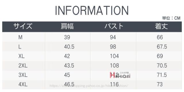| サイズについての説明 | サイズ M L XL 2XL 3XL 4XL |