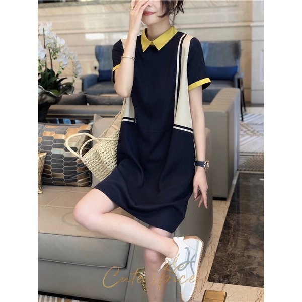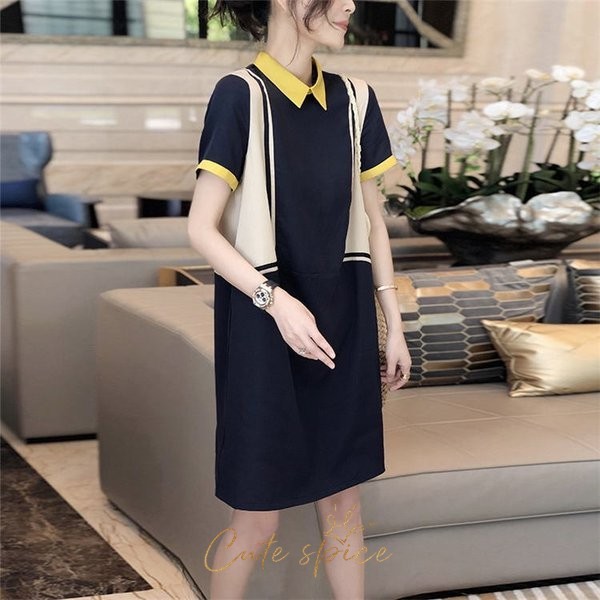 ワンピース レディース スウェットワンピース 配色 切り替えワンピース 大きいサイズ ゆったり 半袖 綿ワンピース Aライン 通勤 通学