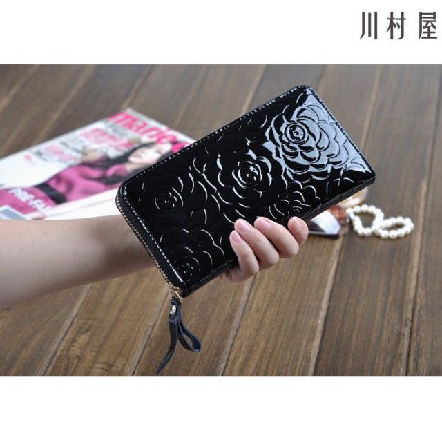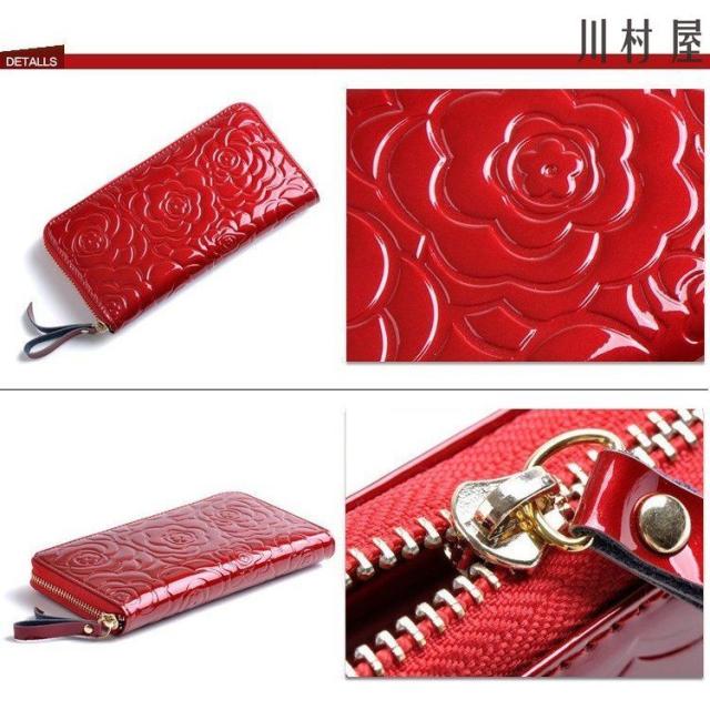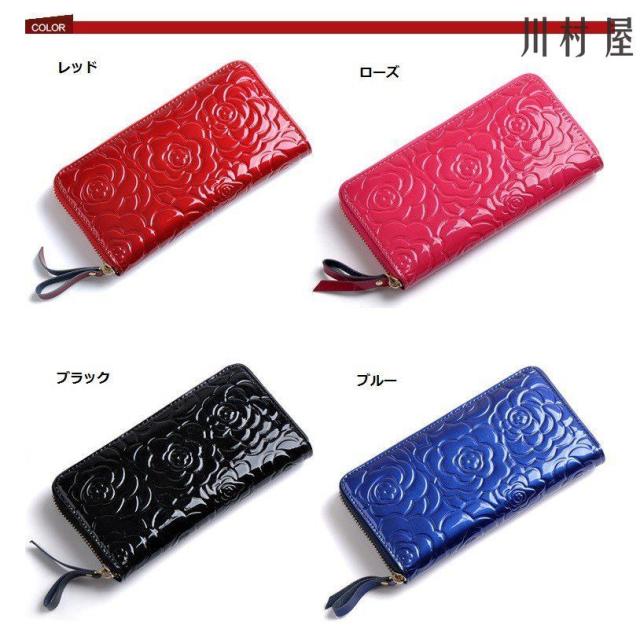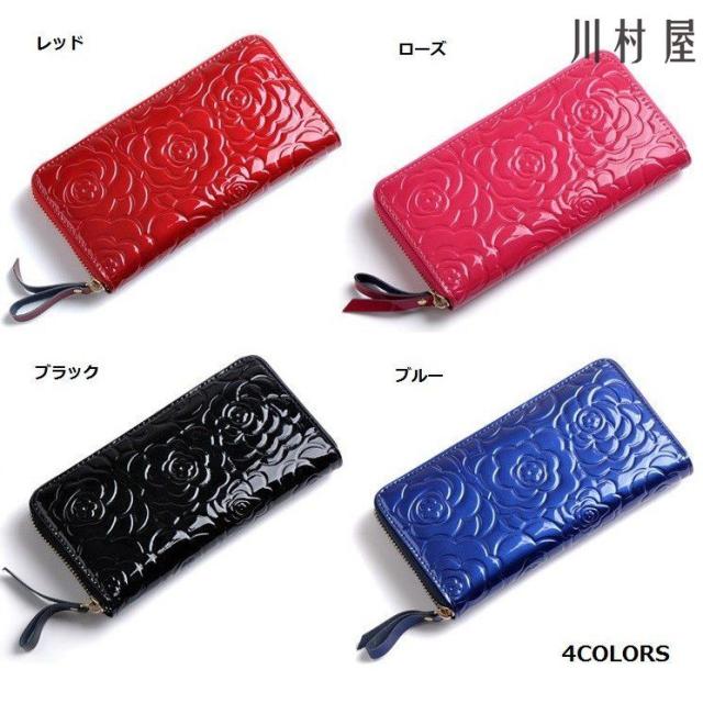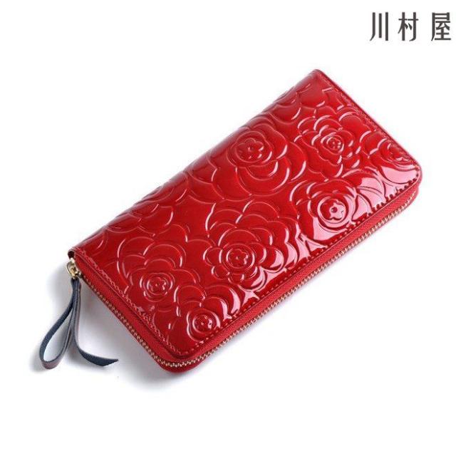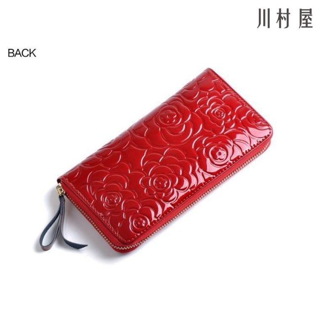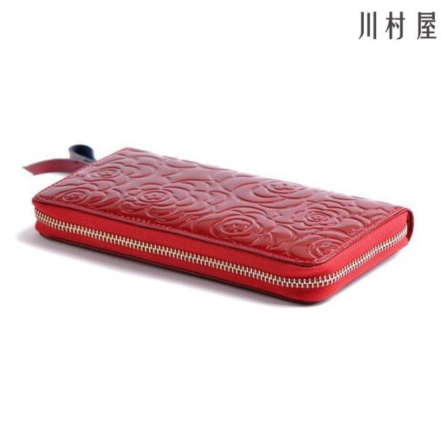 長財布 レディース カメリアモチーフ ラウンドファスナー 革 サイフ さいふ 小銭入れ お札入れ 人気 ギフト