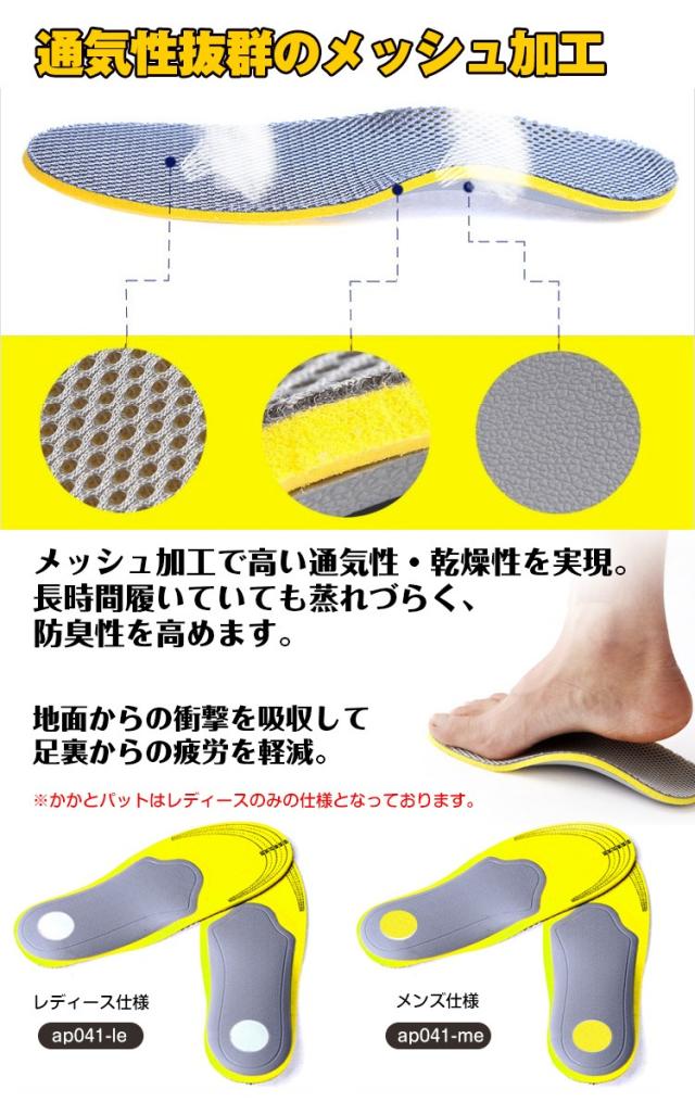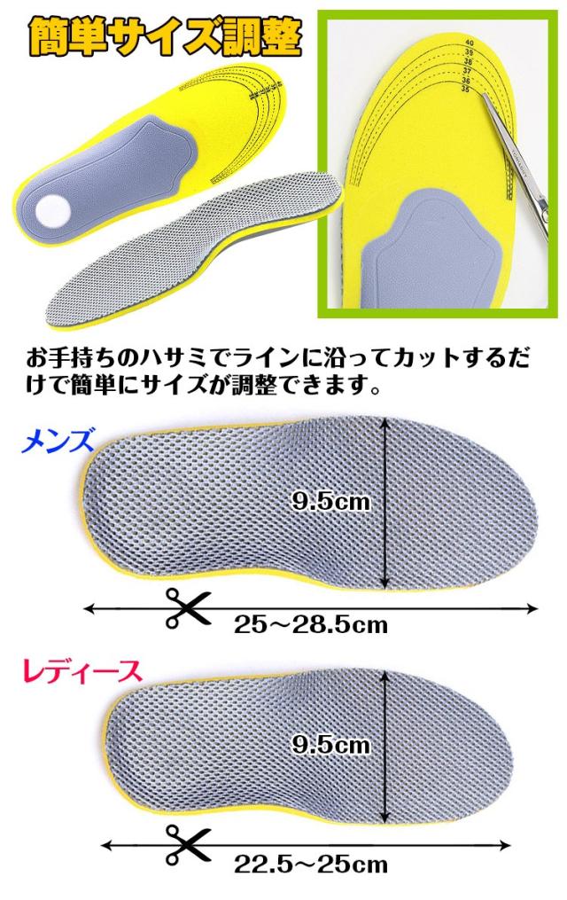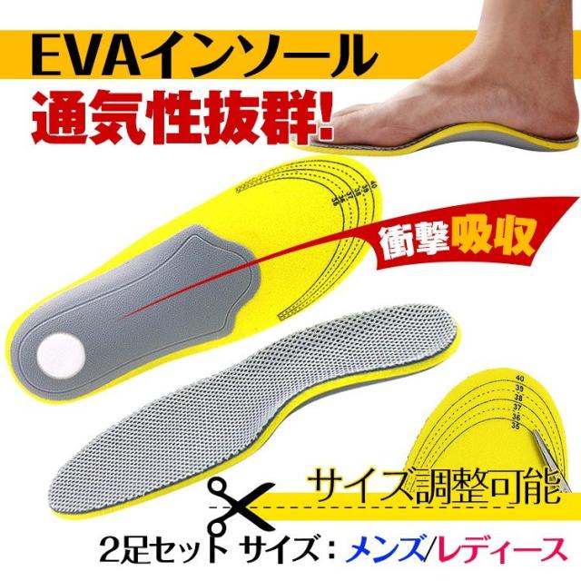 インソール 2足セット 衝撃吸収 メッシュ加工 通気性 かかとパット 中敷き メンズ レディース EVA